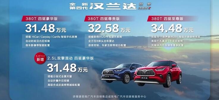 【萬車網(wǎng) 新車】8月10日,廣汽豐田第四代漢蘭達380T車型正式上市,推出380T四驅(qū)豪華版、380T四驅(qū)尊貴版以及380T四驅(qū)至尊版共3款車型,市場建議零售價31.48萬元-34.48萬元。在原有雙擎混動基礎(chǔ)上,新增380T渦輪增壓動力,進一步加強產(chǎn)品矩陣,拓寬消費人群。