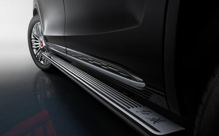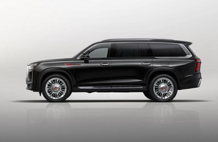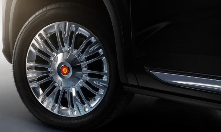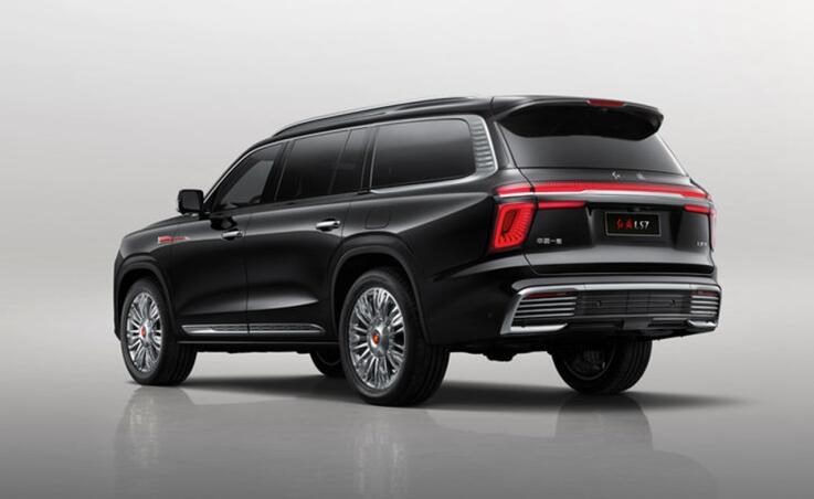側(cè)面采用了非常標準的大型SUV車身結(jié)構(gòu),車身的比例非常協(xié)調(diào),方正的車身保障了車內(nèi)的乘坐空間,在車門窗框周圍以及門把手處加入了鍍鉻裝飾,在前翼子板處還鑲嵌有經(jīng)典的紅旗標,輪圈上使用了紅旗最尊貴的L系列才能用的葵花LOGO。車尾采用了貫穿式的尾燈設(shè)計,兩側(cè)為鏤空樣式的尾燈,后保險杠位置采用了多道橫向鍍鉻設(shè)計。