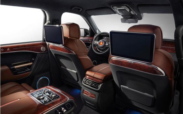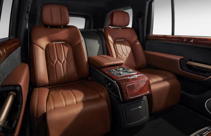 后排是肉眼可見的尊貴,擁有兩個帶有腿托的獨立的座位,支持各種坐姿角度調(diào)節(jié),座椅中間為寬大的中央扶手,上方有多個鍍鉻按鍵。車門同樣如前門一樣華麗,采用了紅木與皮質(zhì)包裹,還有金色的門把手,彰顯的內(nèi)飾設(shè)計的豪華感。