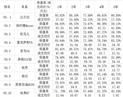 在中型SUV里面,排在保值率排行榜前十的分別是漢蘭達(dá)、保時(shí)捷Macan牧馬人、雷克薩斯NX、寶馬X4奔馳GLC、銳界、勝達(dá)、英菲尼迪QX50、哈弗H7。