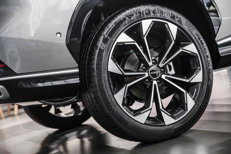 實拍車型配備了20寸幻影輪轂,同級最大的輪轂,將整車氣質(zhì)迅速拔高。馬牌ContiPremiumContact系列輪胎,規(guī)格為245/45 R20,這是一款SUV專用的全能型輪胎,抓地力和舒適性是其主要優(yōu)點。