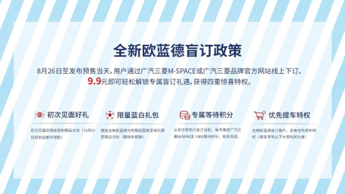 此外,為回應(yīng)全國(guó)車(chē)迷的熱切期待,廣汽三菱還在車(chē)展上正式宣布開(kāi)啟全新歐藍(lán)德限時(shí)盲訂活動(dòng)。8月26日起,僅需9.9元即可在廣汽三菱APP或廣汽三菱品牌官方網(wǎng)站參與盲訂,輕松解鎖四重驚喜好禮:初次見(jiàn)面禮,下訂即送定制精品文創(chuàng)(12月31日前到店即可領(lǐng)?。?;限量藍(lán)白禮包,可在完成購(gòu)車(chē)核銷(xiāo)后獲贈(zèng)全新歐藍(lán)德與阿根廷國(guó)家足球隊(duì)特別定制的限定周邊文創(chuàng);專(zhuān)屬等待積分禮,從支付訂金之日起,每天可獲得1000分等待積分,在購(gòu)車(chē)兌現(xiàn)后可憑積分換取超多精美文創(chuàng)禮品;還有優(yōu)先提車(chē)特權(quán),讓你先人一步,上手新車(chē)。驚喜福利送不停,感興趣的車(chē)友們千萬(wàn)不要錯(cuò)過(guò)。