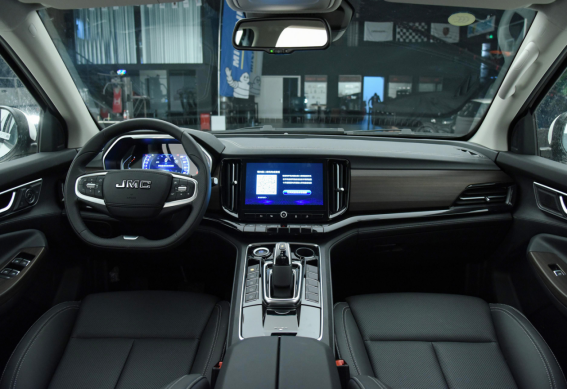 域虎9車內(nèi)采用了仿木紋、金屬、皮等高檔材質(zhì)來凸顯豪華感;其配備了大尺寸全液晶儀表、10英寸中控屏、科大訊飛語音、江鈴智行車聯(lián)網(wǎng)、L2級ADAS高端智能駕行等智能配置,以及皮質(zhì)方向盤、帶加熱及通風(fēng)的皮座椅、自動空調(diào)、天窗等舒適配置,域虎9的舒適及智能性不輸主流SUV車型。
