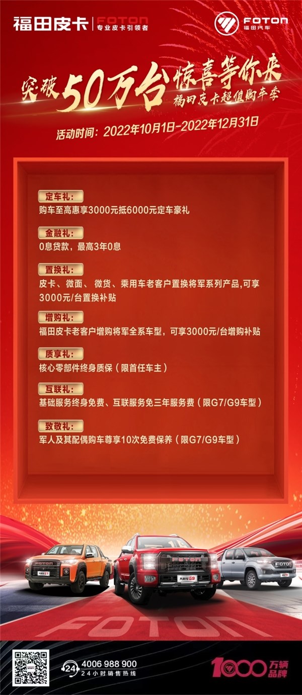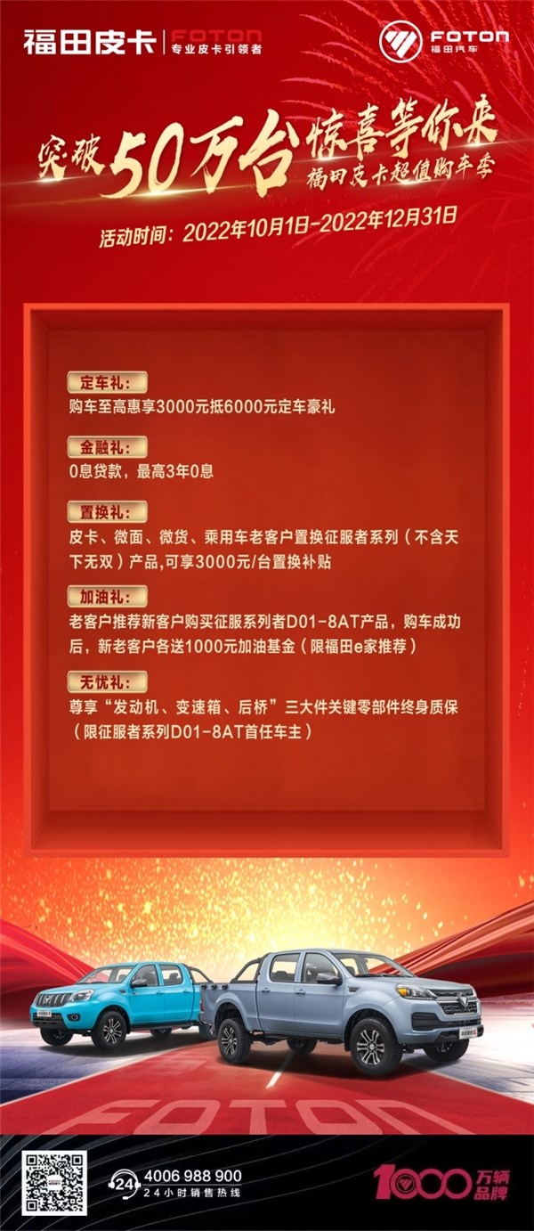 突破50萬(wàn)臺(tái),福田皮卡百萬(wàn)壕禮大放送,只有你想不到!