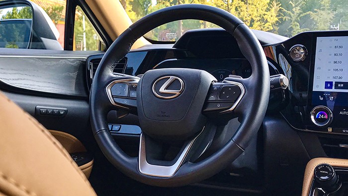 雷克薩斯NX的內(nèi)飾風(fēng)格叫做tazun韁繩概念座艙,最大的特點(diǎn)就是那塊明顯偏向于駕駛員那側(cè)的14英寸超大屏幕,hud抬頭顯示系統(tǒng)可以和方向盤的多功能按鈕相配合,操作時(shí)也不需要低頭,體驗(yàn)感相當(dāng)不錯(cuò)。