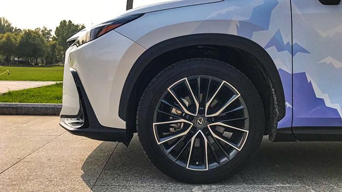 NX 350h這款車屬于第二代雷克薩斯NX,它的長(zhǎng)寬高分別是4660、1865、1670mm,軸距為2690mm,所有的相關(guān)數(shù)據(jù)和上一代相比還是有所進(jìn)步的。車身側(cè)面來(lái)看很緊湊,硬朗的線條和折線塑造出不錯(cuò)的運(yùn)動(dòng)感,與雙色20英寸多條輻輪轂相匹配的是普利司通ALENZA 001系列偏舒適節(jié)能的輪胎,符合車輛定位。