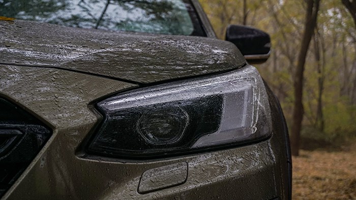 眼前的2022款斯巴魯OUTBACK傲虎2.5i探享版EyeSight擁有獨(dú)特“清秋綠”配色和全黑色輪轂及包圍,使車身外觀非常有山系氣質(zhì),這些也與車身兩側(cè)綠色車型銘牌“OUTBACK”相映成趣。輔之以斯巴魯EyeSight駕駛輔助系統(tǒng)和左右對(duì)稱全時(shí)四輪驅(qū)動(dòng)系統(tǒng)(Symmetrical AWD)的保駕護(hù)航,在這一場秋冬更替的雨天我開著這個(gè)熟悉的老朋友進(jìn)入山林,聽著雨聲、來看看最后的一場落葉。2022款斯巴魯傲虎2.5i探享版EyeSight的官方指導(dǎo)價(jià)為31.28萬元。