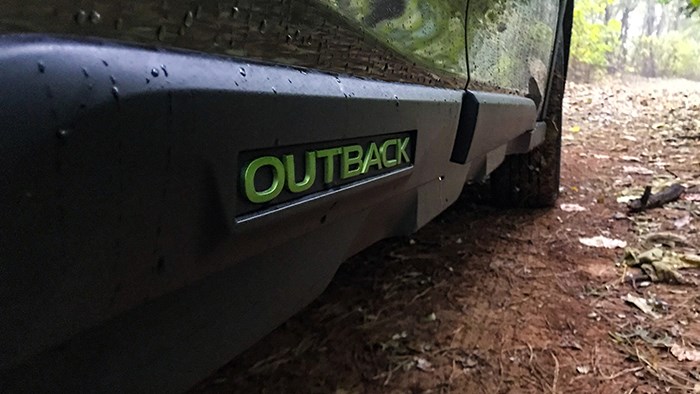 傲虎探享版的車身側(cè)面線條和車身尺寸與其他版相同,只有高度較其他兩款車低5毫米,在車門下方有熒光綠色“OUTBACK”標(biāo)示。另外體型巨大的黑色車頂行李架、黑色反光鏡以及黑色涂裝18英寸鋁合金輪轂,這些都是獨(dú)有配置。