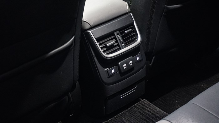 后排座椅同樣采用相同材質(zhì),同樣舒適。中央地板處稍有隆起。后排還提供了兩檔座椅加熱以及獨(dú)立的空調(diào)出風(fēng)口,并帶有兩個(gè)USB充電接口。后排座椅靠背可通過兩側(cè)的調(diào)節(jié)開關(guān)進(jìn)行角度調(diào)節(jié)。