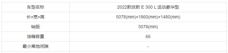 從上表可以了解到,奔馳E級(jí) 2022款 改款 E 300 L 運(yùn)動(dòng)豪華型這款車型的車身長(zhǎng)度為5078mm、寬度為1860mm、高度為1480mm,軸距為3079mm。