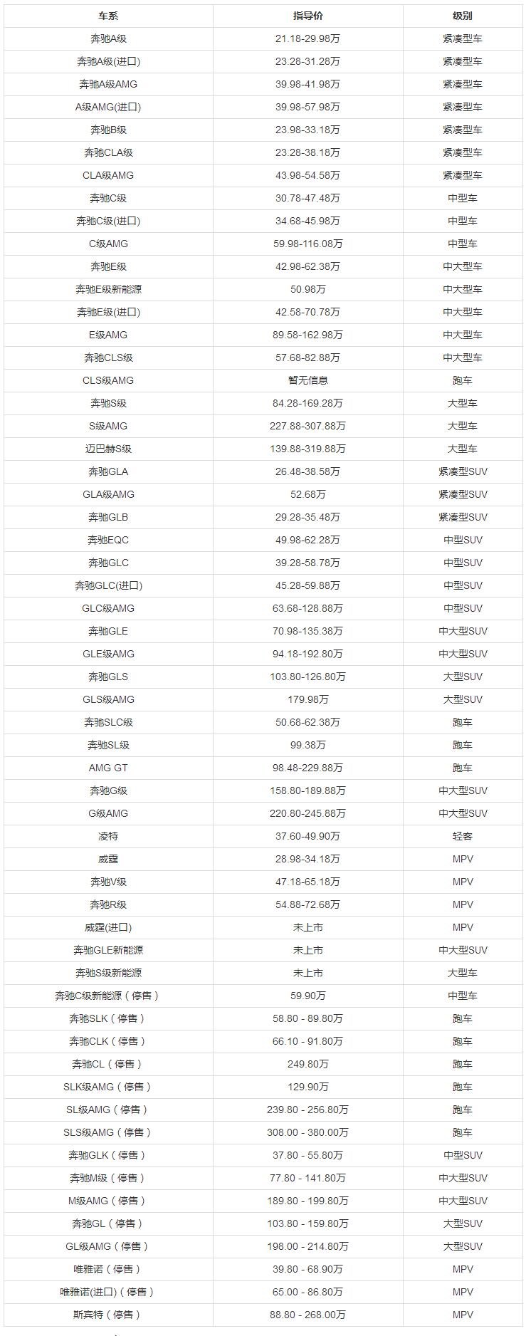 奔馳車系價(jià)格表,奔馳車型大全