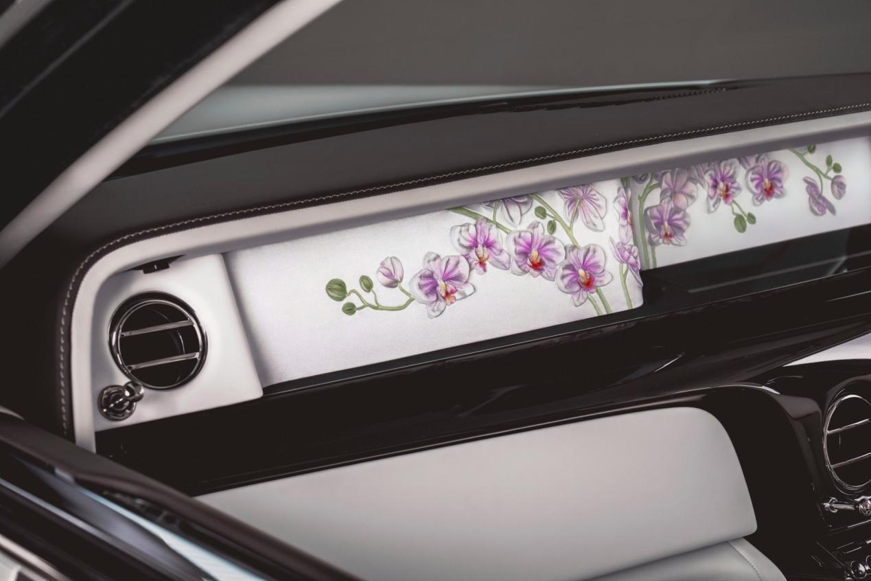 作為獨一無二的Bespoke高級定制車型,幻影“幽蘭”典藏版的靈感來自新加坡國花,象征著美麗、堅韌和力量?;糜啊坝奶m”典藏版的中控面板部分,由屢獲殊榮的藝術(shù)家海倫·艾米·默里 (Helen Amy Murray) 親自創(chuàng)作,采用絲綢手工制作三維立體花紋,打造別出心裁的手繪畫廊。