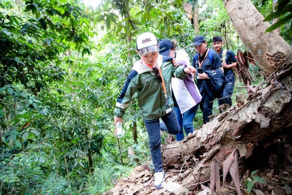 行走在熱帶雨林猶如置身在一場植物的盛宴中,古樹參天,遮天蔽日,一路上會(huì)看到很多稀有且珍貴的是植被,據(jù)說很多植物都有很高的藥用價(jià)值,而且只在這里生長。體驗(yàn)官們聽著雨林中的百鳥爭鳴,呼吸著原始森林的新鮮空氣,跋山涉水,欣賞雨林絞殺、石山生樹、老莖生花等奇觀,只顧驚嘆,早已忘記了疲憊。好在有華為手環(huán)隨行,全程監(jiān)控在徒步中的身體健康數(shù)值,讓大家不用在此分心,同時(shí)也可讓家長隨時(shí)掌握孩子的情況,放神獸們?cè)谟炅掷镒杂扇ヒ啊?