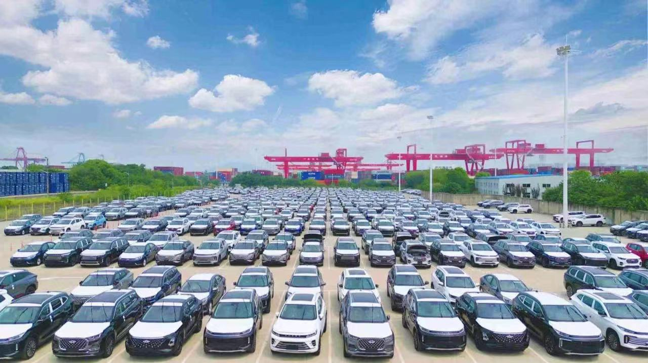 (圖為港口物流待發(fā)全球市場的奇瑞汽車各品牌車型)
