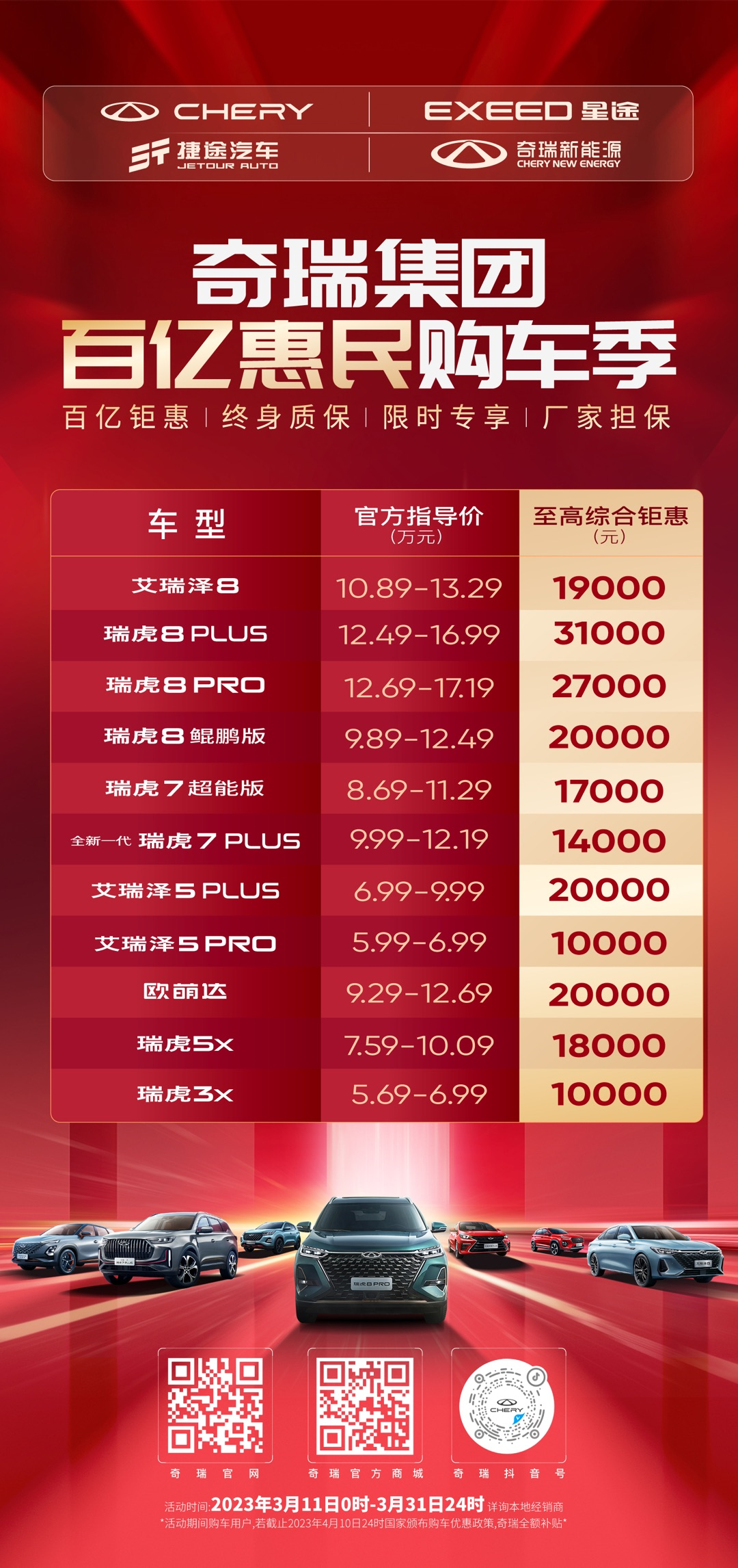 史上最強(qiáng)購(gòu)車(chē)政策 奇瑞集團(tuán)發(fā)布百億購(gòu)車(chē)鉅惠行動(dòng)