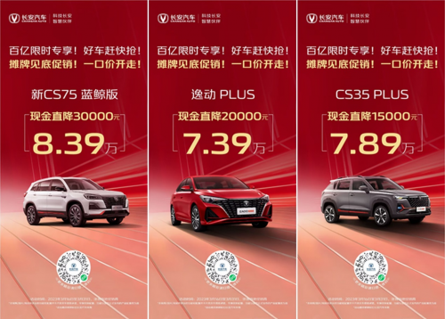 7.39萬買逸動PLUS,8.39萬買新CS75藍(lán)鯨版,長安百億惠民購車季快搶!