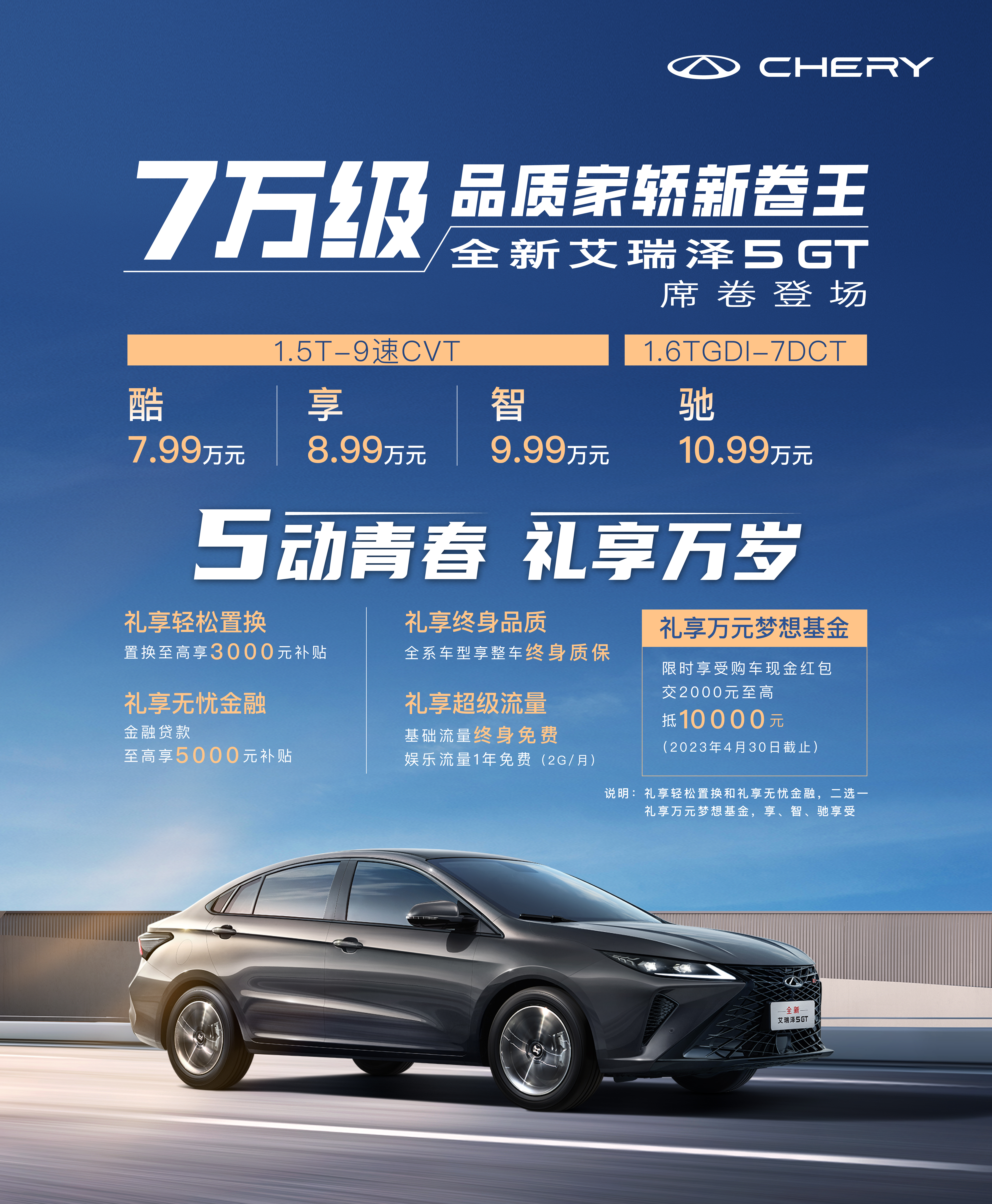 ①禮享萬元夢想基金:限時享受購車現(xiàn)金紅包,交2000元至高抵10000元(2023年4月30日截止);