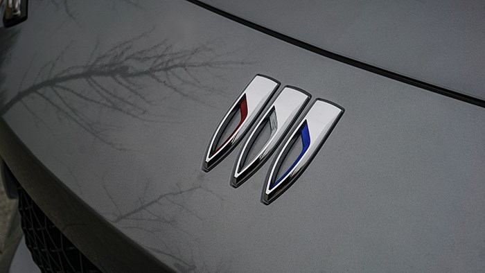 中網(wǎng)格柵上部則是別克全新的三色盾車標(biāo),作為車頭為數(shù)不多的裝飾之一,顯得格外引人注目。