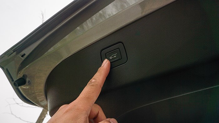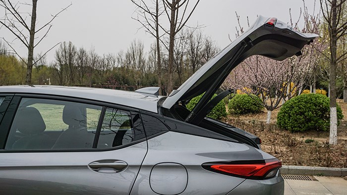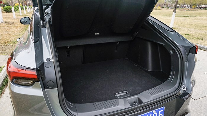 掀背造型的后背箱門為電動開啟,后備箱空間比較規(guī)整,底部平整,可以勝任日常的家庭使用場景。后備廂常規(guī)容積為421L,最大可擴展至1273L。