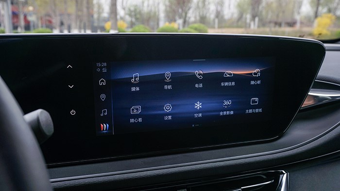 中控屏單獨來看面積不太大,但是功能配備還是比較完善的。車輛搭載了別克最新的eConnect智能互聯(lián)科技,整體UI界面進(jìn)行了扁平化設(shè)計,并且還支持自定義卡片式交互。內(nèi)置了包括愛奇藝、百度地圖等諸多應(yīng)用,其中導(dǎo)航模式下,可通過"三指導(dǎo)航飛屏"將中控導(dǎo)航滑動至全液晶儀表盤顯示。此外車機系統(tǒng)還支持OTA遠(yuǎn)程升級、手機App遠(yuǎn)程控制以及CarPlay功能。