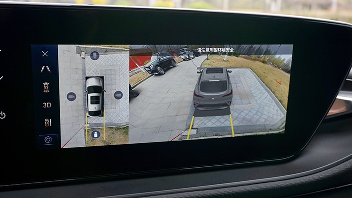 試駕車輛配置十分豐富,配備流媒體后視鏡、全速自適應(yīng)巡航、主動剎車、車道保持、盲區(qū)監(jiān)測等駕駛輔助系統(tǒng),同時還帶有360度全景影像,帶有透明底盤功能。
