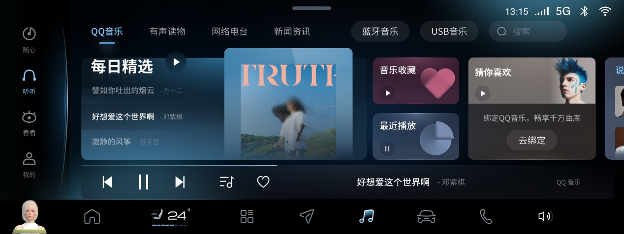 在視聽(tīng)感受上,升級(jí)后的車(chē)機(jī)系統(tǒng)重新整合了在線音樂(lè)平臺(tái)、USB及藍(lán)牙音源入口,優(yōu)化了藍(lán)牙音樂(lè)播放邏輯,改善了應(yīng)用冗余、手機(jī)車(chē)機(jī)承接等問(wèn)題,讓音樂(lè)播放在手機(jī)與車(chē)機(jī)間更加自如、流暢,讓用戶得以“一路縱享”,一路隨心,想聽(tīng)就聽(tīng)。