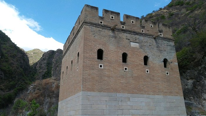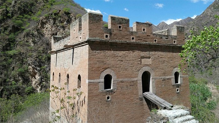 "沿河城、沿河口"長城隸屬明代長城內三關之一的紫荊關管轄,扼守幾道三口、水口,是塞外通往 北京 的要沖之一,戰(zhàn)略位置非常重要,因此修建得非常給力,敵樓高大,城垣堅固,易守難攻。如今,城堡尚在(有修復的痕跡),1#敵樓僅剩部分條石基礎,2#敵樓已是遺跡難尋,3、4、5#敵樓保存基本完好,4#敵樓北側短墻僅剩部分毛石基礎,被雜草灌木掩蓋。