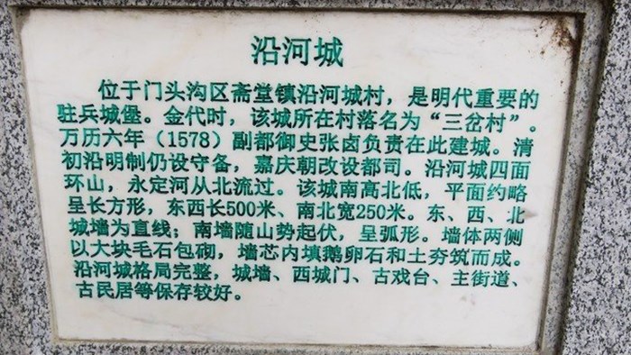 北京沿河城,因扼守幾道山口水口古稱“三岔(汊)村”、“沿河口”,萬歷六年(公元1578年)建城后,始稱“沿河城”。其隸屬明代長城內三關之一的紫荊關所轄,是塞外通往北京的要沖之一。據(jù)大明天啟四年(1642年)守備沿河口地方都指揮張經緯所立《沿河城守備府碑》載:“沿河口守備設于嘉靖三十二年(1553年),城建于萬歷六年(1578年)”,“沿河以山為城,以河為池,乃京師咽喉之地”。 此處當年與七座樓同屬沿河城管轄,所以樓臺都是“沿字第X號”標序。