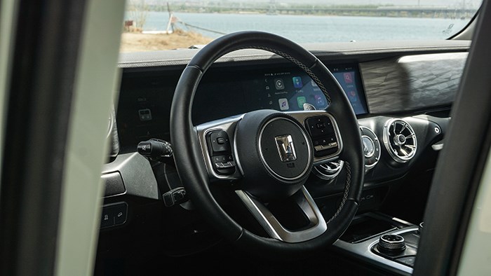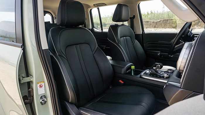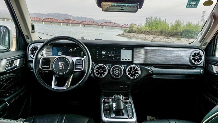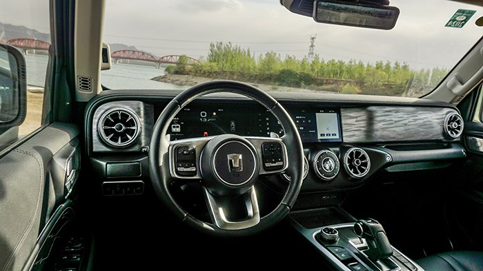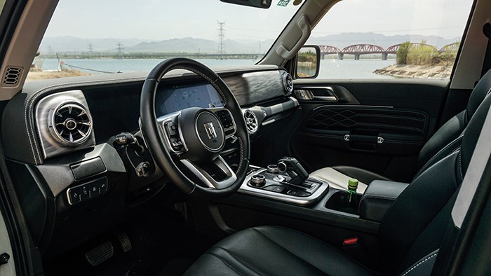 拉開車門,可以看到坦克300的內(nèi)飾采用T型的布局,橫平豎直的造型與其硬派越野車的定位相呼應(yīng)。