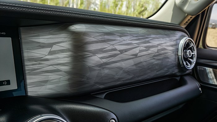 車內(nèi)同樣使用大量直線和圓形相結(jié)合,全黑內(nèi)飾的設(shè)計(jì)和用料都很有豪華SUV的視覺和觸碰感。