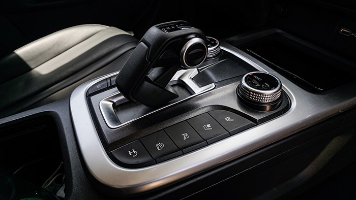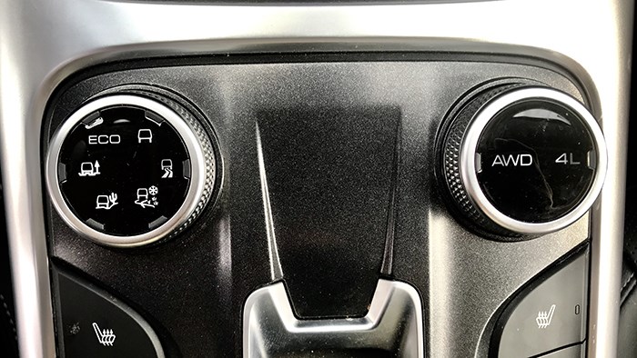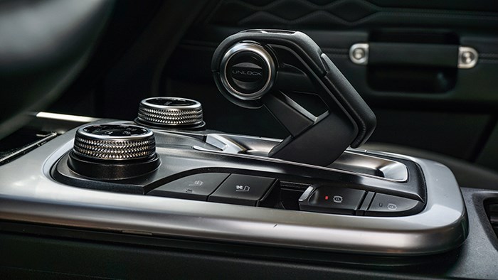 換擋機(jī)構(gòu)為飛機(jī)操作桿的樣式,造型很有科技感。兩側(cè)則是一些常用的功能鍵選擇,包括越野時(shí)常用的功能都可以一鍵開啟或關(guān)閉。