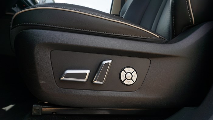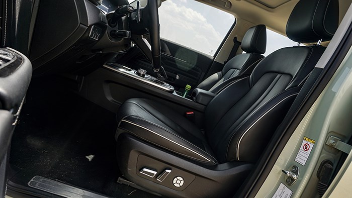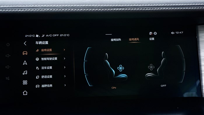 前排座椅的填充物比較厚實(shí),恰到好處的支撐對身體非常貼合,開車時(shí)間長了也不會(huì)明顯覺得疲勞。主副駕駛座椅的加熱及通風(fēng)功能均可在換擋桿區(qū)域一鍵開啟,分三檔調(diào)節(jié)。