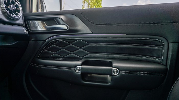 車內(nèi)大量采用皮質(zhì)材料和縫線進(jìn)行包裹,細(xì)節(jié)之處還使用了一些金屬質(zhì)感的材料進(jìn)行點(diǎn)綴,細(xì)節(jié)也禁得起推敲。包括門板上都使用了細(xì)膩的皮質(zhì)進(jìn)行包裹,縫線造型也是花了一些小心思。