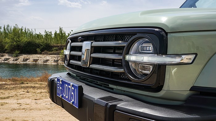 這款車的配色是十分招人喜歡的,以至于跑在路上的回頭率很高,官方對這款顏色的命名是種草綠。有一種大自然、小清新的味道。從外觀上看,坦克300的車頭是硬朗的風(fēng)格,前中網(wǎng)由三條粗壯的鍍鉻飾條組成,比較符合坦克300的硬派氣質(zhì)。