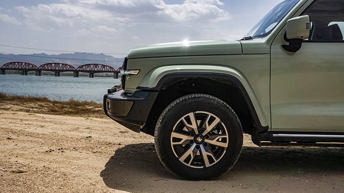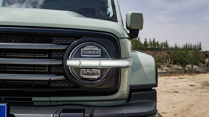 保險(xiǎn)杠直接采用外露的樣式,在越野時(shí)可起到不錯(cuò)的防護(hù)效果,中低強(qiáng)度的越野幾乎不會(huì)損傷到車漆。
