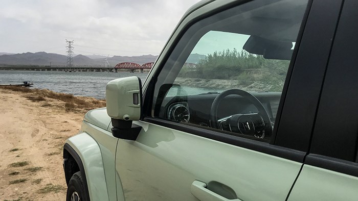 外后視鏡的尺寸不小,與坦克300的壯碩身材比較契合,同樣使用了與車身同色的涂裝。攝像頭也被集成在了后視鏡的外殼上,不會(huì)覺得攝像頭的存在是一件突兀的事情。在轉(zhuǎn)彎時(shí)這兩枚攝像頭影像可以直接投射到中控屏上,供駕駛員參考。