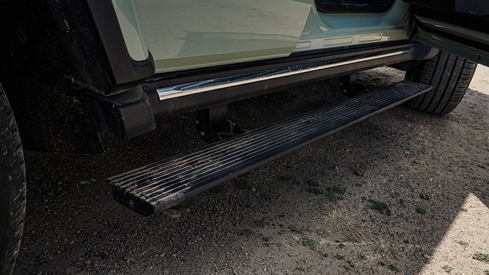 為了方便乘客上下車,坦克300城市版配備了電動(dòng)式的踏板,拉開車門踏板伸出,關(guān)門踏板收回。腳踏板的面板寬大且進(jìn)行了防滑處理。