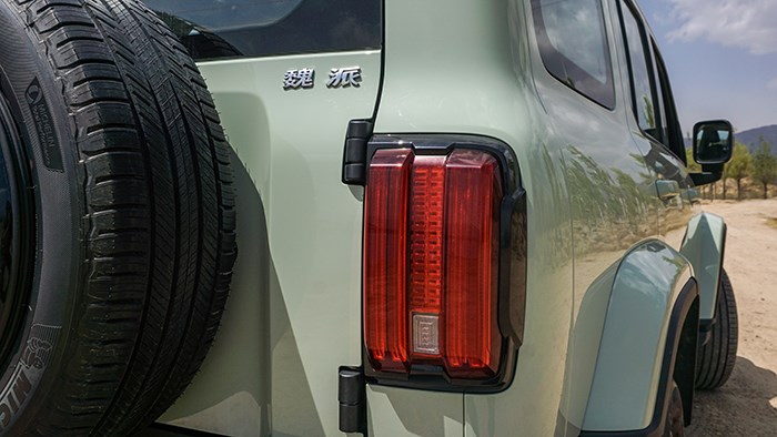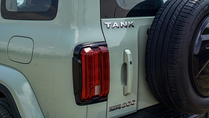 坦克300的車尾使用了越野車經(jīng)典的外掛備胎設(shè)計(jì),這樣的設(shè)計(jì)不僅讓坦克300看起來更有野性氣息,同時(shí)也不會(huì)讓備胎侵占車內(nèi)空間。尾門采用從左側(cè)開啟的平開門設(shè)計(jì),牌照框也是位于左下方的位置,車尾最能展現(xiàn)坦克300個(gè)性化的一面,開在路上就連尾部也是回頭率較高的存在。