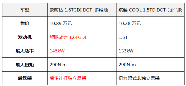 而繽越COOL搭載的1.5T發(fā)動機(jī),最大功率133kW,最大扭矩290N·m,發(fā)動機(jī)性能要弱于歐萌達(dá)。且其后懸架采用的是扭力梁式非獨(dú)立懸架,所以在操控感和乘坐舒適性上,繽越COOL未能強(qiáng)于歐萌達(dá),這也是歐萌達(dá)更受年輕性能黨歡迎的原因。