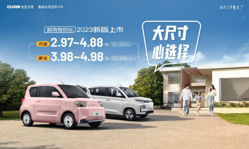 2023國家重點(diǎn)推廣新能源車普及,并給出政策指引扶持和指引。A00級純電小車眾多品牌也相繼發(fā)力給出了金融方案,進(jìn)一步降低購車門檻。某菱MINI推出了電池月付的購車方案,看似門檻低,卻有不低的利息和首付。近日,行業(yè)新銳BAW北汽制造新能源2023新版上市,元寶汽車2.97萬起,家寶汽車3.98萬起,續(xù)航覆蓋120km-220km,更有誠意的推出了“0利息、0首付”兩種購車方案,成為純電小車價格“守門員”。
