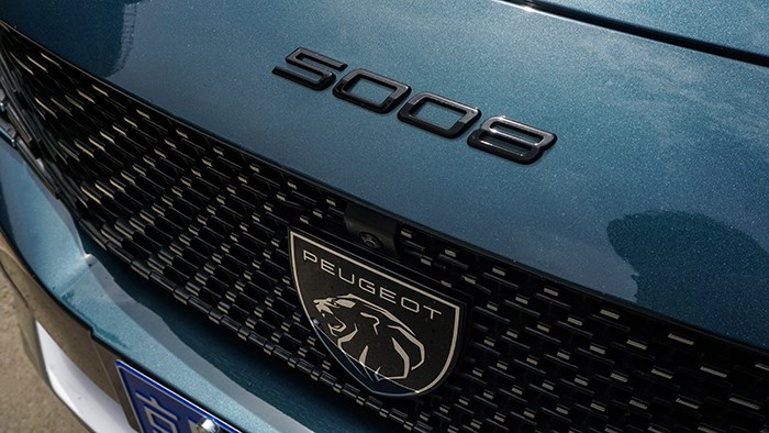 新款5008外觀最明顯的變化是車(chē)頭設(shè)計(jì),散射狀進(jìn)氣格柵搭配全新盾牌獅子頭車(chē)標(biāo)Logo,兩側(cè)翼子板也有鑲嵌這個(gè)全新的徽章logo。