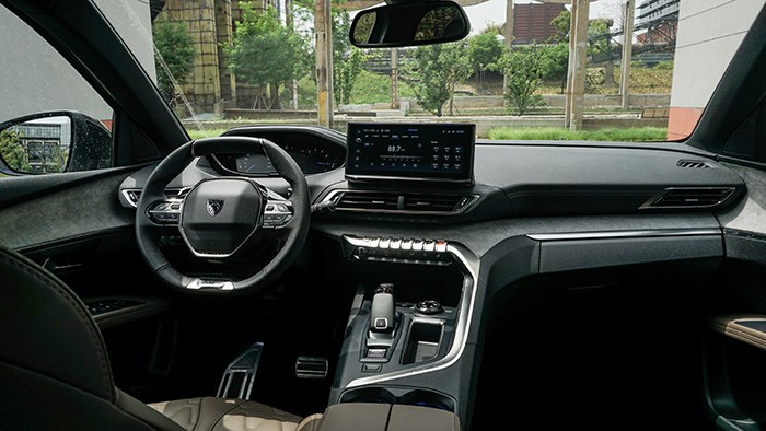 5008延續(xù)了標(biāo)致i-Cockpit座艙設(shè)計(jì)理念,整個(gè)中控操作區(qū)域更靠向駕駛員一側(cè)。坐在駕駛位,仿佛身處飛行器座艙一般。
