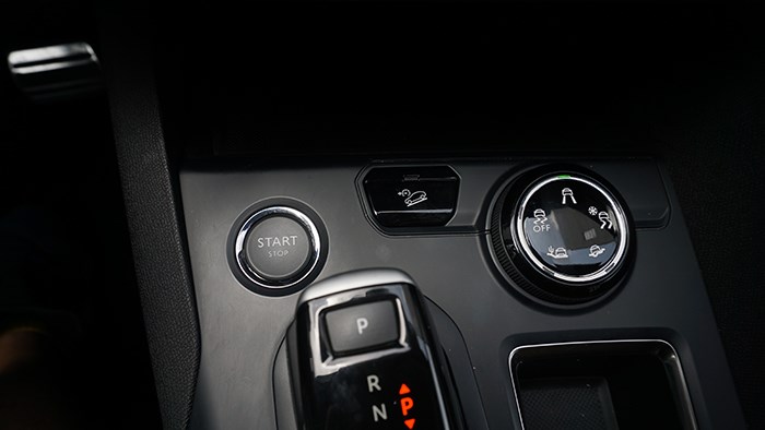 換擋桿右上方是駕駛模式調(diào)節(jié)旋鈕,有多種不同路況可以讓駕駛員選擇。