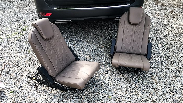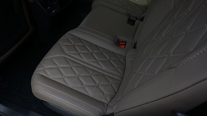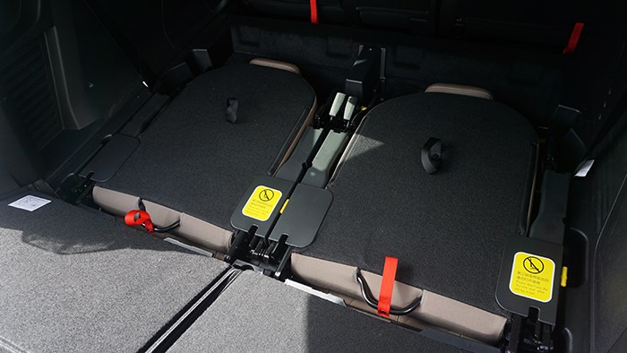 第三排座椅可偶爾臨時(shí)使用。在郊游野營(yíng)時(shí)還可以直接拆下使用,畢竟在戶外,皮質(zhì)座椅的舒適性可是傳統(tǒng)釣魚(yú)凳所不能企及的。