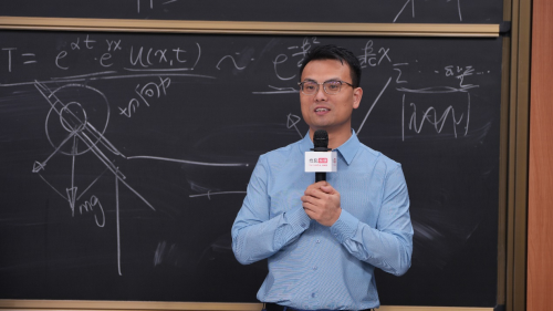 課堂上,張朝陽不僅通過經(jīng)典振動方程與量子力學結合,從固體物理角度講解了量子化的“聲音”——聲子,而且通過方程式推導出全新天籟車內(nèi)搭載的ANC主動降噪系統(tǒng)(Active Noise Cancellation system)的工作原理,即兩個振動的疊加就會使得行駛中的車內(nèi)環(huán)境噪聲的振動趨于零。就像是拔河,噪聲往左、反向聲波就往右,噪聲向上、反向聲波就向下,這樣就可以抵消噪聲對人的影響,從而達到了主動降噪的功能。