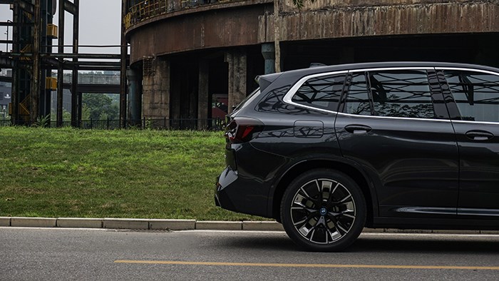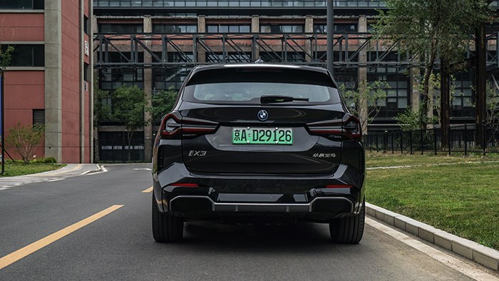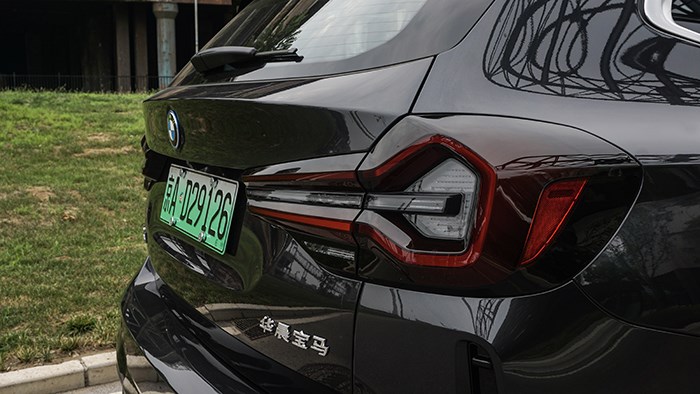 車尾部分保持了與燃油版寶馬X3相同的造型設(shè)計(jì),車尾頂部的大塊擾流板搭配傾斜的后風(fēng)擋,顯得更有運(yùn)動范兒。