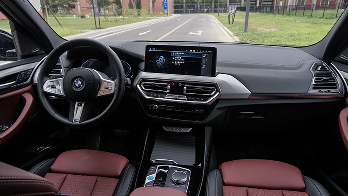 在保持了寶馬i品牌內(nèi)飾設(shè)計(jì)風(fēng)格的基礎(chǔ)上,純電動寶馬iX3將細(xì)節(jié)質(zhì)感全面升級。非常典型的寶馬家族風(fēng)格,在用料方面保持了該有的水平,中控臺使用了大量的皮質(zhì)包裹,手感不錯。另外,配合中控面板上精美的啞光銀色裝飾,很有檔次感。