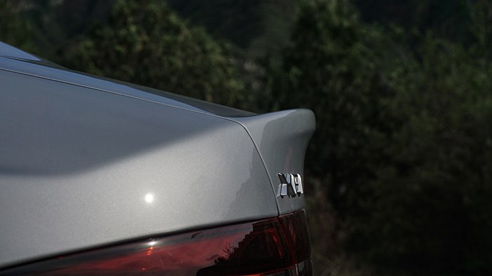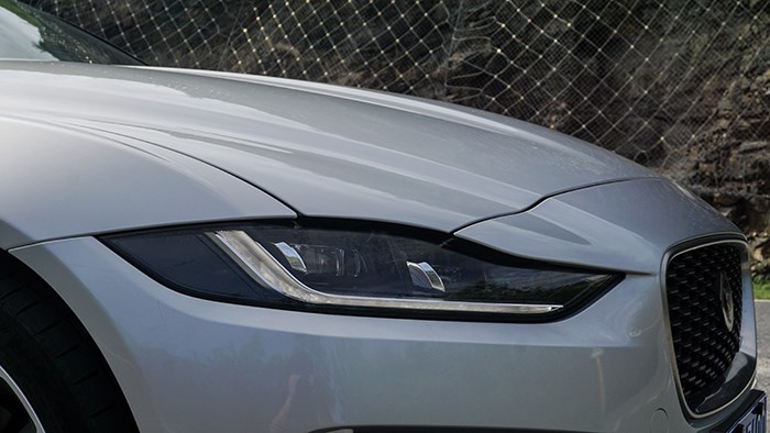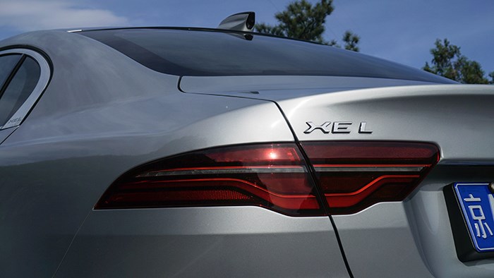 捷豹XEL有進(jìn)取版與青春版兩款車型,外觀上兩款車只能從輪轂和無鑰匙及尾部標(biāo)識(shí)這種小細(xì)節(jié)來區(qū)分。眼前這臺(tái)為2.0T 250PS R-DYNAMIC S進(jìn)取運(yùn)動(dòng)版,使用了官方稱之為:白馬銀色油漆,這是一種介于淺灰色與銀色之間的顏色,在各種光線下非常有立體感。