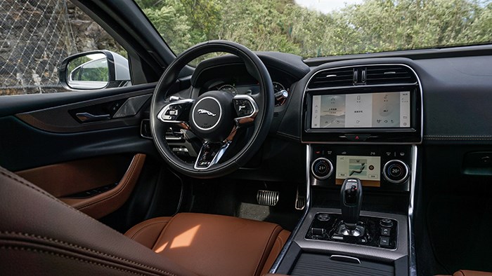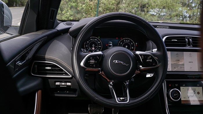 內(nèi)飾部分,捷豹XEL延續(xù)了之前車型的內(nèi)飾整體設(shè)計(jì),方向盤、空調(diào)影音娛樂面板,換擋機(jī)構(gòu)這幾處都設(shè)計(jì)了啞光銀色裝飾,進(jìn)一步彰顯運(yùn)動(dòng)氛圍。12.3英寸全液晶儀表顯示效果清晰細(xì)膩,內(nèi)容可根據(jù)需求進(jìn)行設(shè)置,例如全儀表、地圖以及車輛信息等,搭配中控雙大屏設(shè)計(jì)。