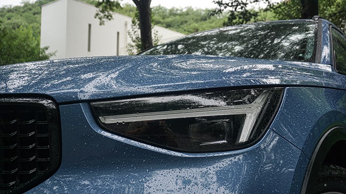 眼前這臺沃爾沃XC40是小改款車型,依舊是遵循了沃爾沃典型的家族式設(shè)計理念,標(biāo)志性的雷神之錘大燈做了一些細(xì)微的變動,變的更有棱角。無論在白天還是夜晚,亮燈的那一刻都會令人過目不忘。全面黑化的專屬運動套件,前中網(wǎng)的點陣式裝飾更顯運動。